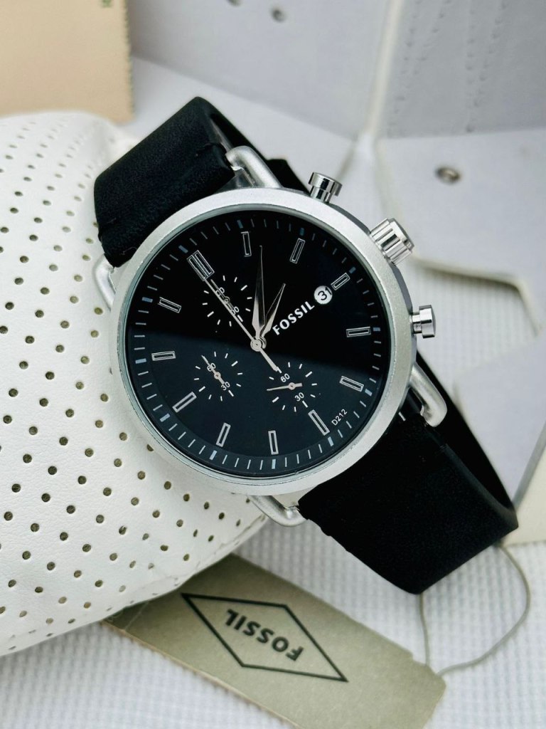 * FossilΒ ο * In stock*ο * For men * 7AAA * Original model * Feature- -12 hr dial -Round black silver case -Day indicator -Date indicator -Digital and analog timings -Heavy quality -Solid back steel case